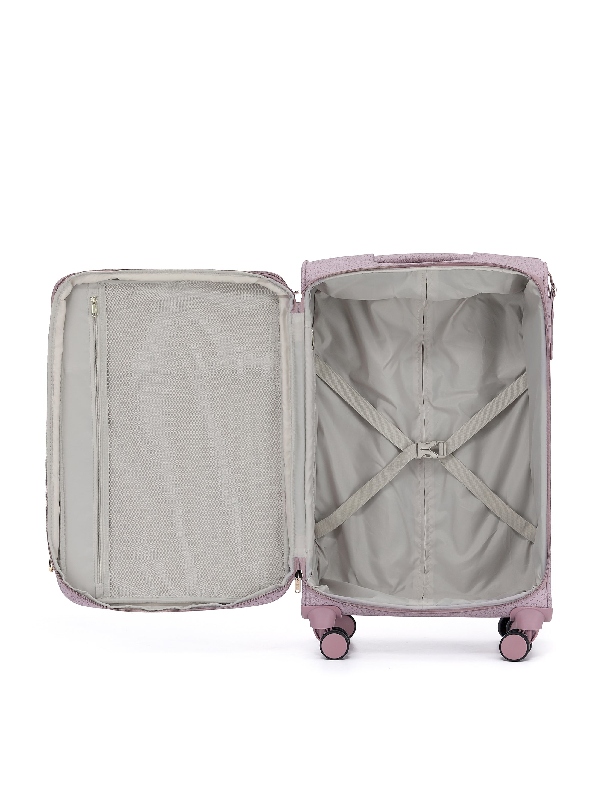 The Tosca Willow 66cm Fashion Medium Suitcase Spinner in Misty Rose is the ideal blend of style and practicality for travelers who prioritize space and ease of use.